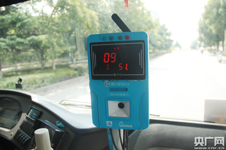 圖為嘉興市公交車上的移動(dòng)支付設(shè)施。(央廣網(wǎng)記者張佳琪 攝)