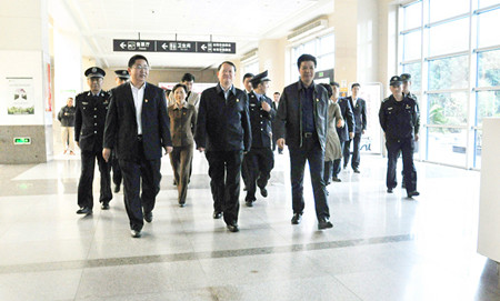 陳利眾一行先后來到客運(yùn)中心售票廳和候車室,詳細(xì)詢問了車站的客流、班次、經(jīng)營情況,以及國鴻公司在安保人員配備、教育等方面的措施。在聽取了公司領(lǐng)導(dǎo)介紹后,陳利眾對公司各項安保措施予以肯定,同時要求公司繼續(xù)加強(qiáng)安全管理,嚴(yán)格按照相關(guān)要求維護(hù)站場安全,確保車站旅客運(yùn)輸工作安全有序,確保社會和諧穩(wěn)定,為護(hù)航首屆中國國際進(jìn)口博覽會及第五屆世界互聯(lián)網(wǎng)大會烏鎮(zhèn)峰會發(fā)揮積極保障作用。
